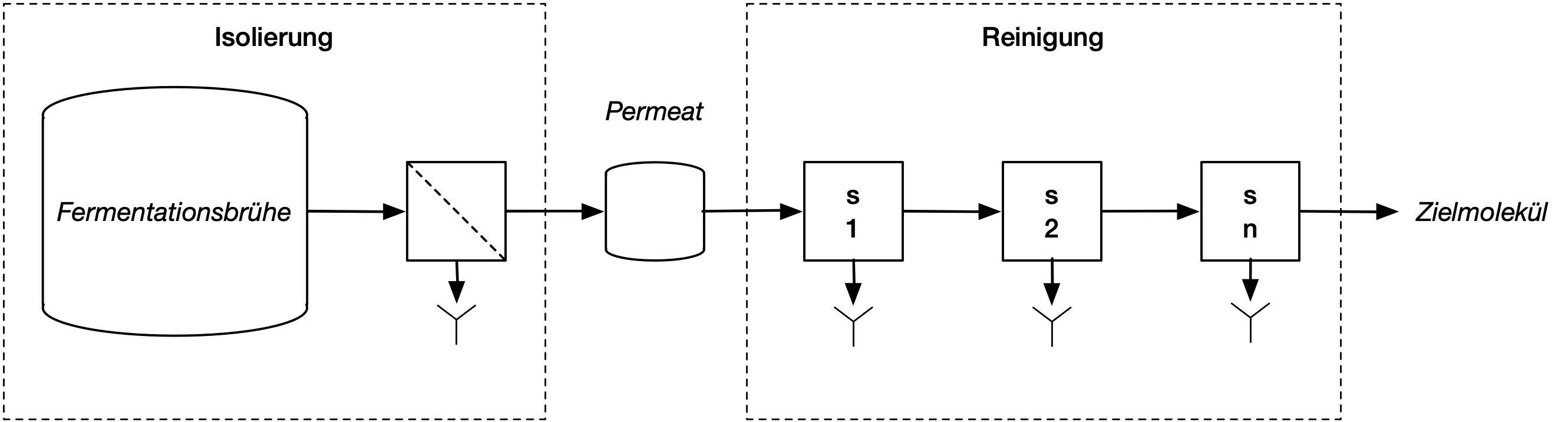 In der anschliessenden Reinigung wird nun das Zielmolekül in möglichst wenigen Schritten möglichst rein aus dem Permeat isoliert, gereinigt und konzentriert.